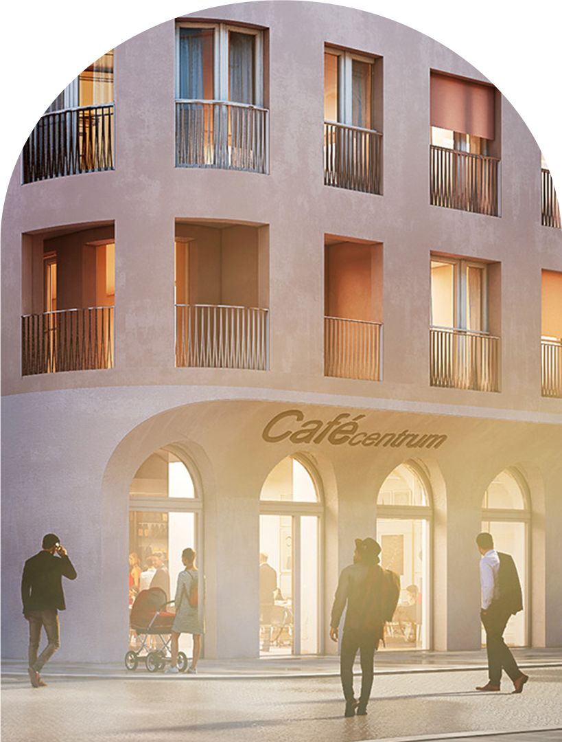„Pro prázdnou parcelu situovanou v historickém centru Ostravy jsme společně s Martinem Tycarem, Jurajem Matulou a Kristýnou Vyslychovou navrhli typologické pětidomí s centrálním dvorem. Jde o tradiční formu stavby městského centra, která odkazuje na rozměrové, urbánní i typologické souvislosti lokality. Silueta celého objektu je městsky tvarovaná, navržená tak, aby v žádném z uličních pohledů nevznikla pouze jedna průběžná římsa. Vnější obálka celé stavby kontextuálně odráží okolí, v němž je zasazena, zatímco vnitroblok bude svět sám pro sebe. Pracujeme tak hned s několika „významy" fasád: čtyři uliční orientované do okolní zástavby, které splývají s okolím a různě variují, pátá fasáda do dvora a šestá na střeše pokryté zelení.”